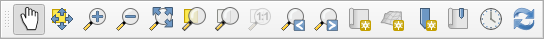 Mange operationer i QGIS foretages på et udvalg af objekter i kortet. Denne udvælgelse eller selektion af kortobjekter i QGIS sker ofte med udgangspunkt i ét af værktøjerne i ‘Udvælgelsesværktøjslinjen’:
